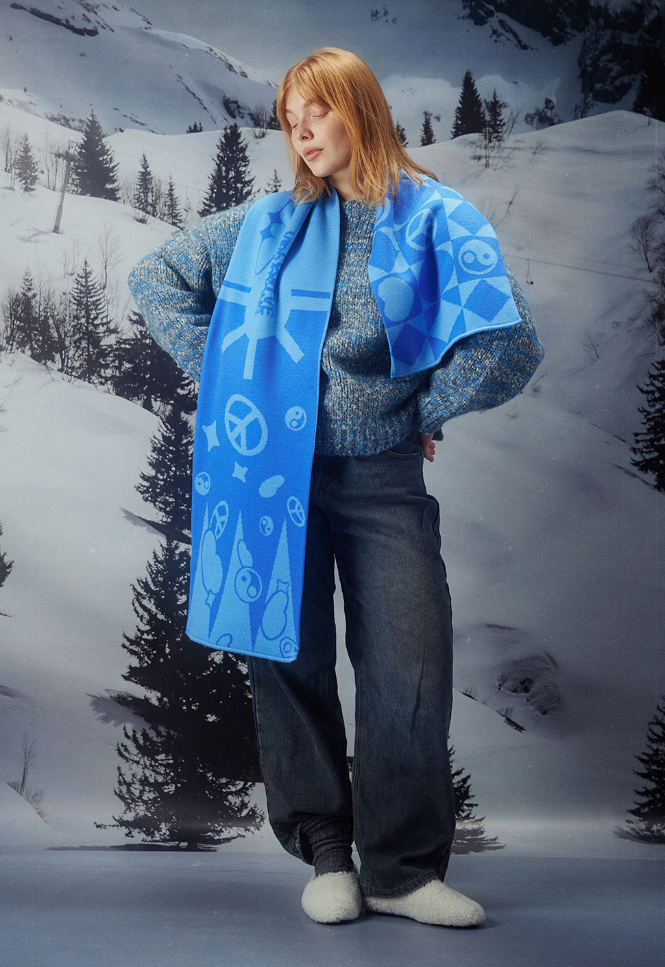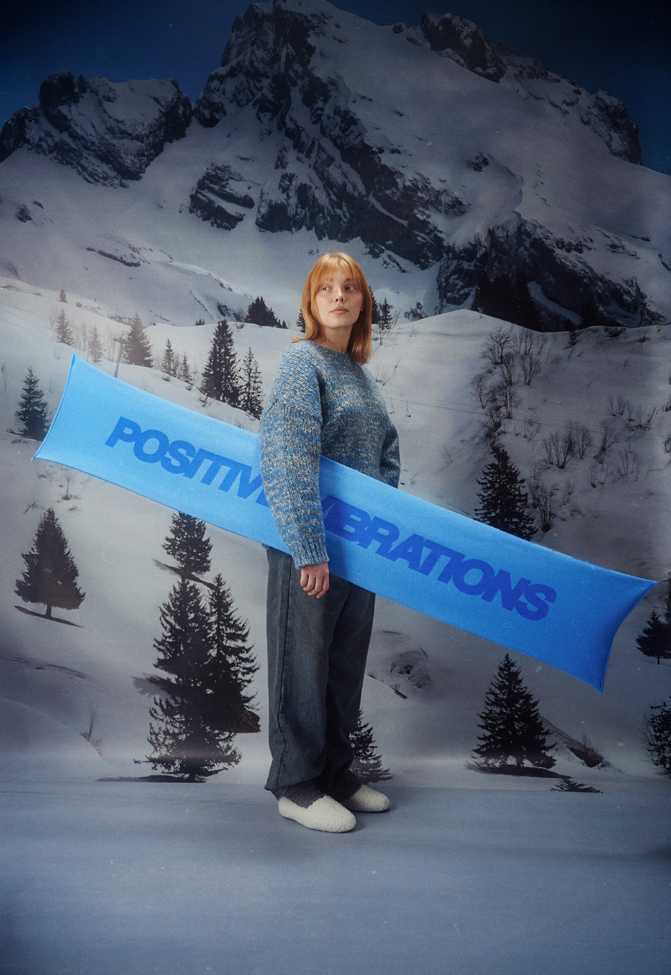 Шарф "Positive Vibrations" голубой выполнен из акрила.