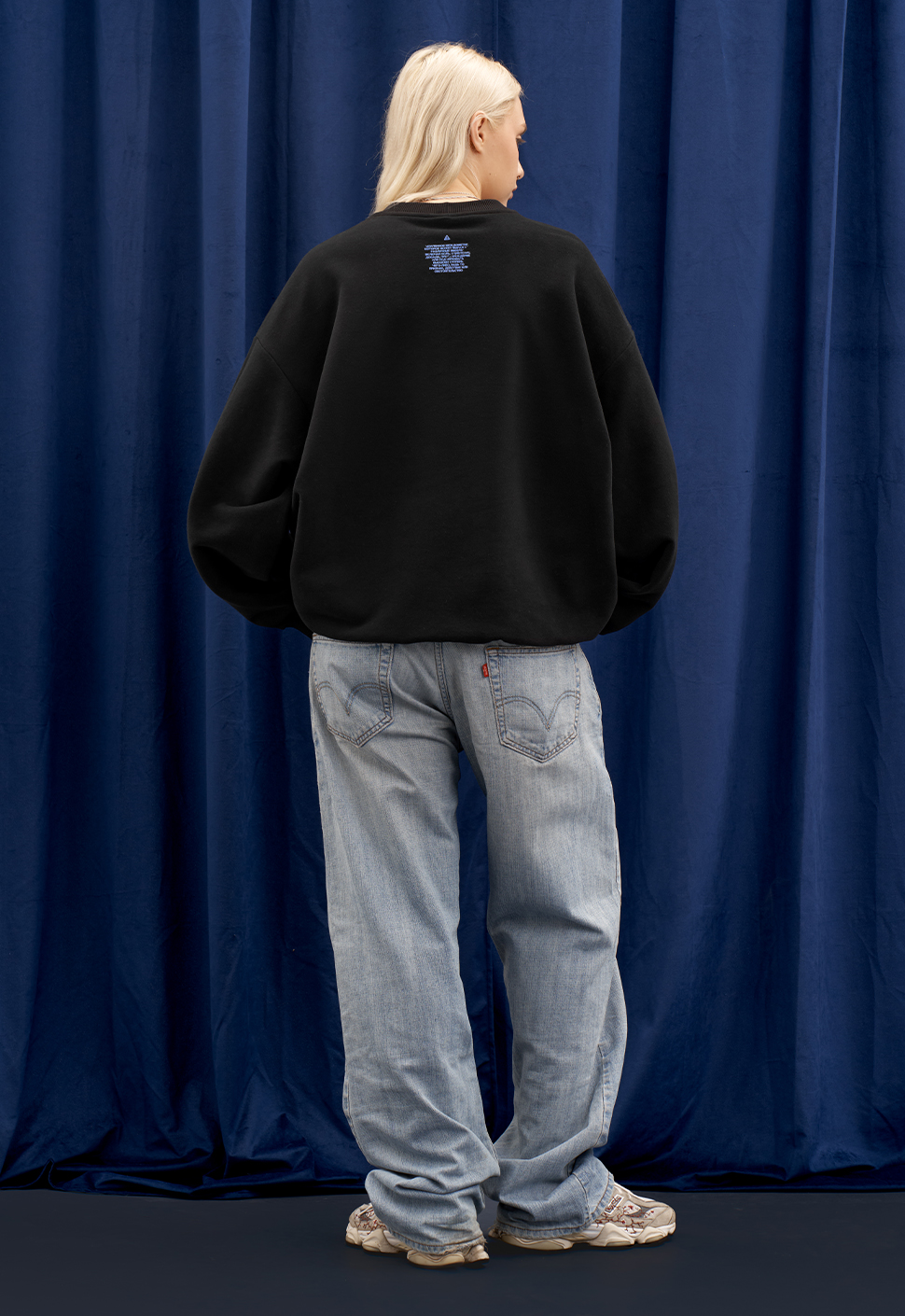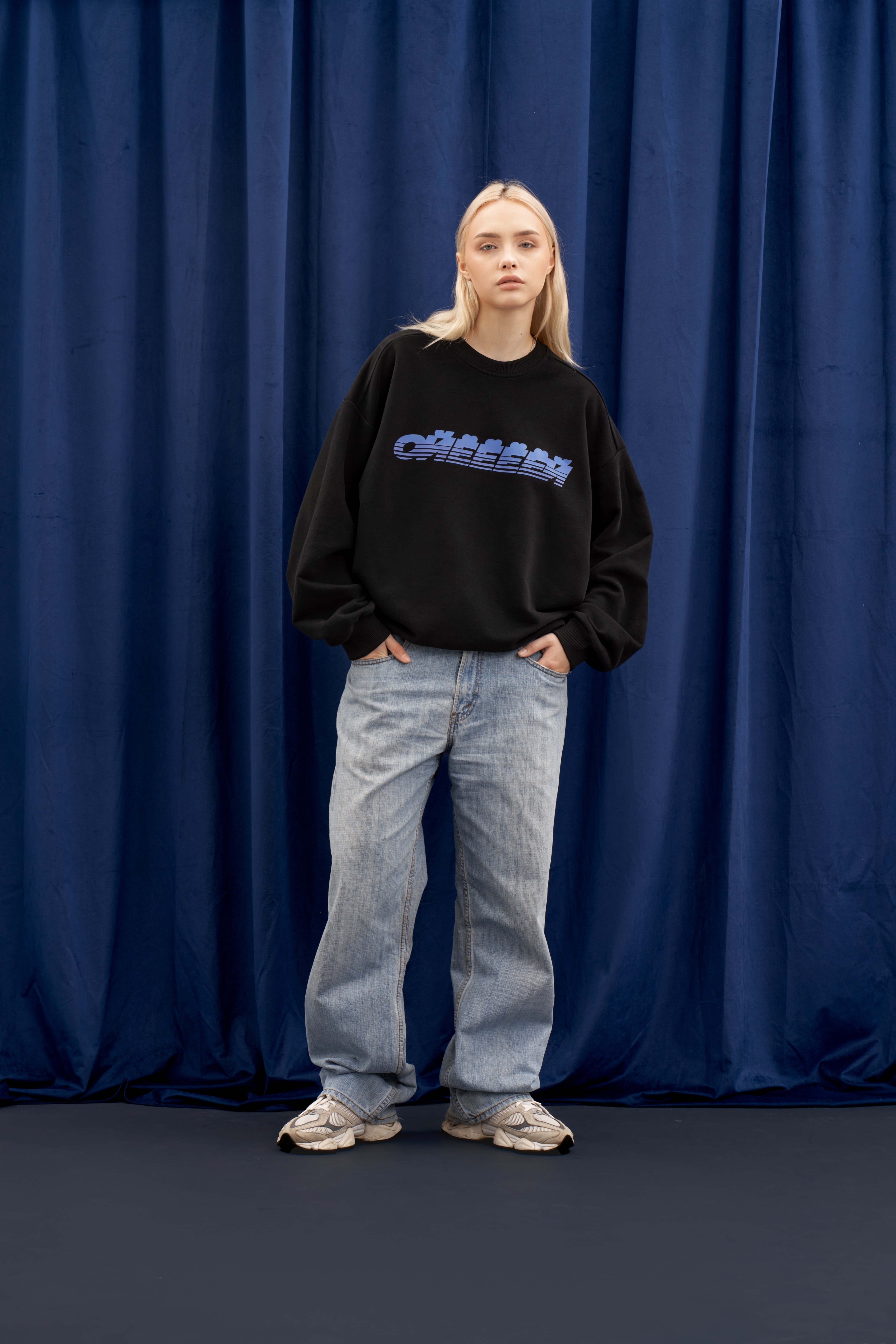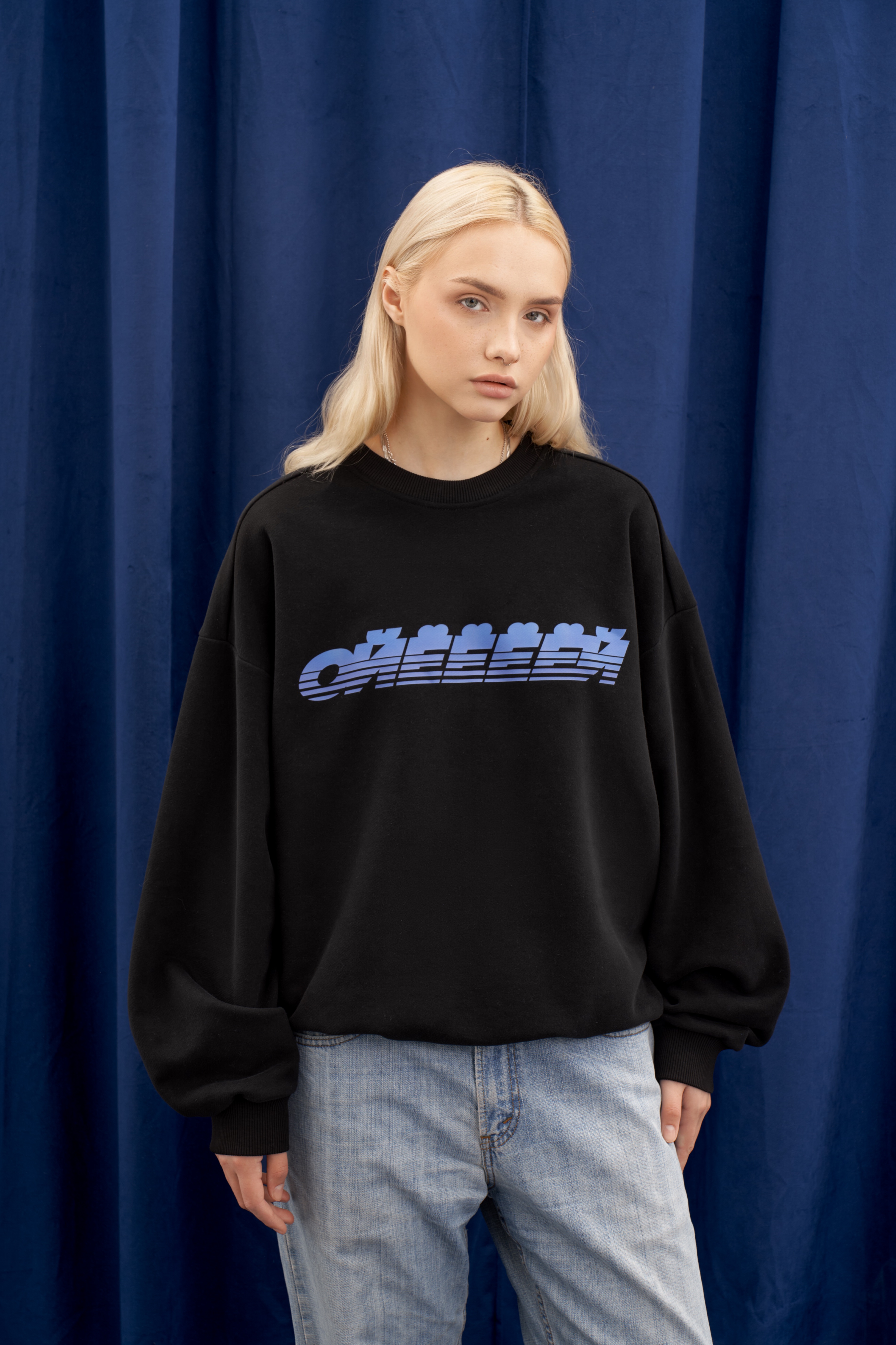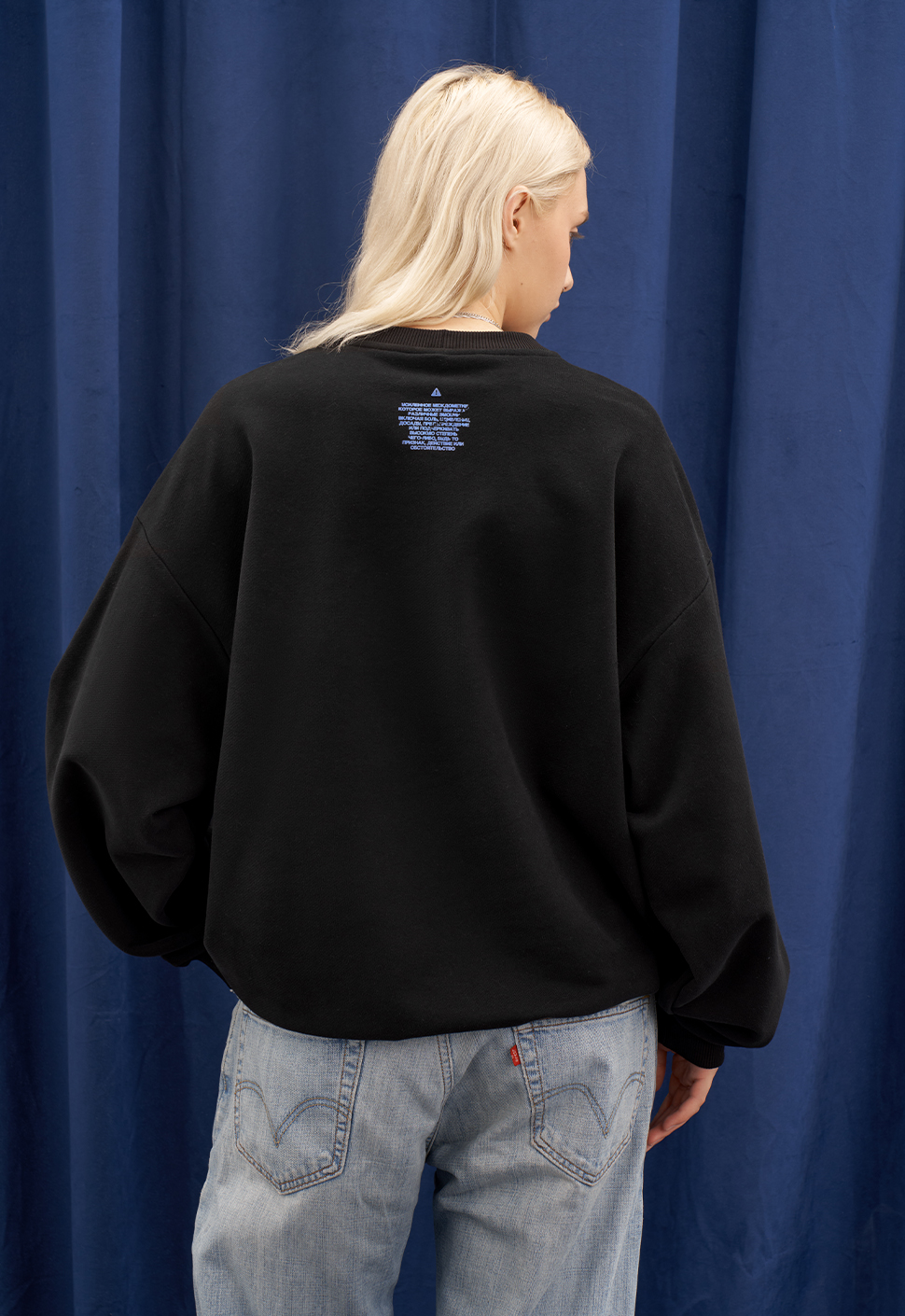 Чёрный свитшот от Приятного Ильдара "Тише Маленькая" oversize кроя выполнена из высококачественного плотного хлопка плотностью 320 гр/м2. В боковом шве изделия расположена фирменная бирка “Приятный Ильдар”. Принт на груди и спинке выполнен шелкографией.