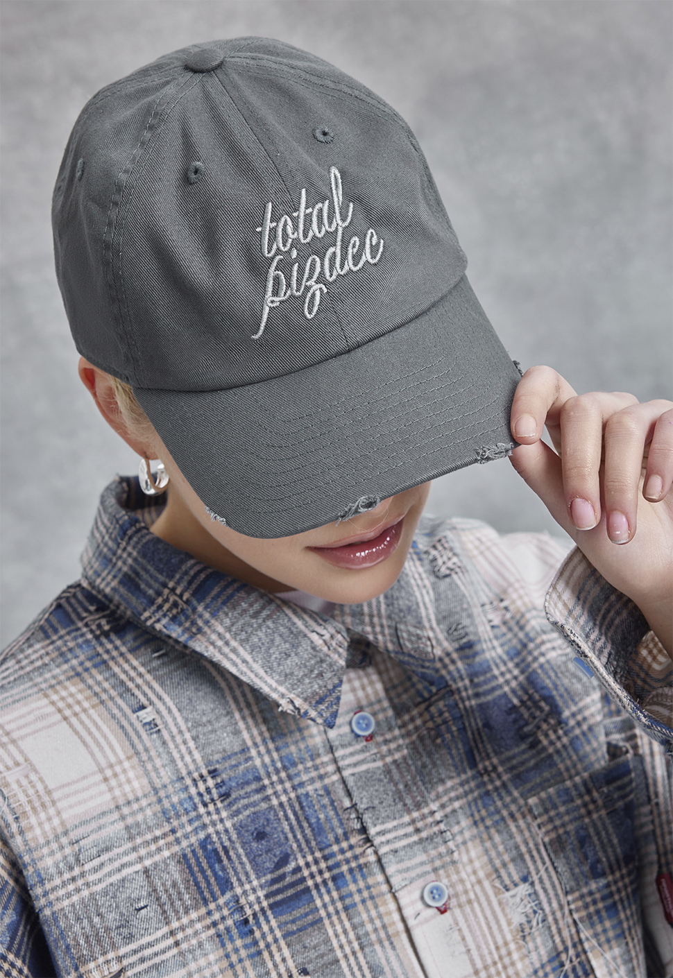 Бейсболка от Приятного Ильдара "Total pi*dec" в сером цвете с декоративными потёртостями