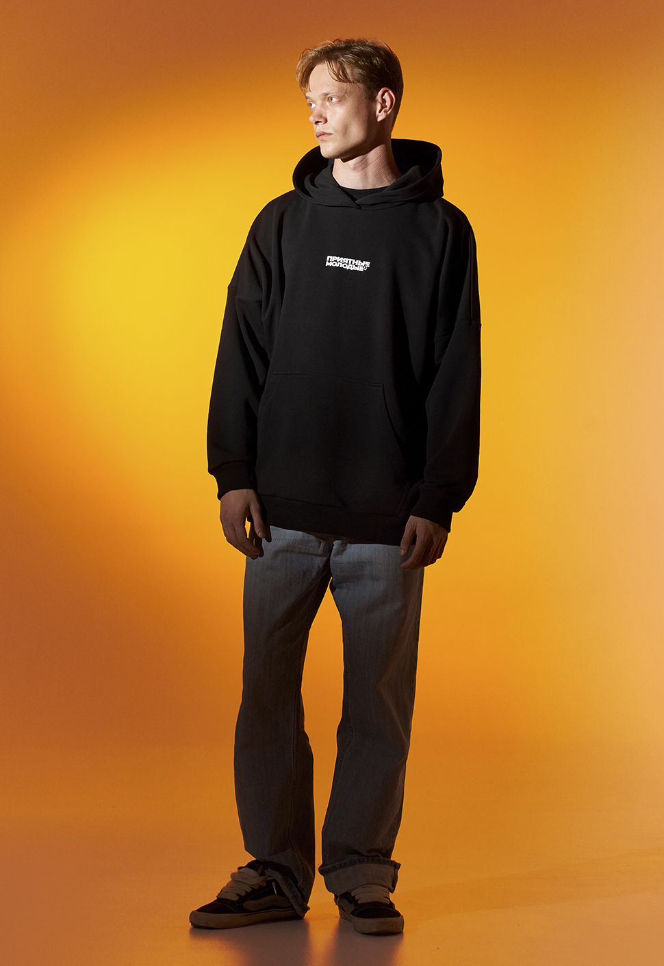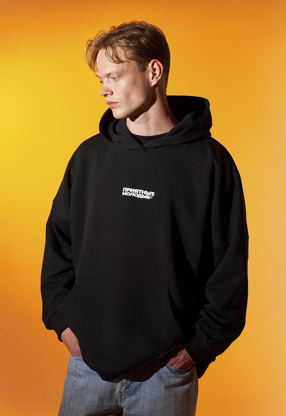 Черное худи от Приятного Ильдара "Kak zhe Vse za*bali" oversize кроя выполнен из высококачественного плотного хлопка плотностью 320 гр/м2 с бархатным эффектом. Нанесение сделано машинной вышивкой, также в изделии присутствуют декоративные потертости и регуляторы внизу для изменения объема