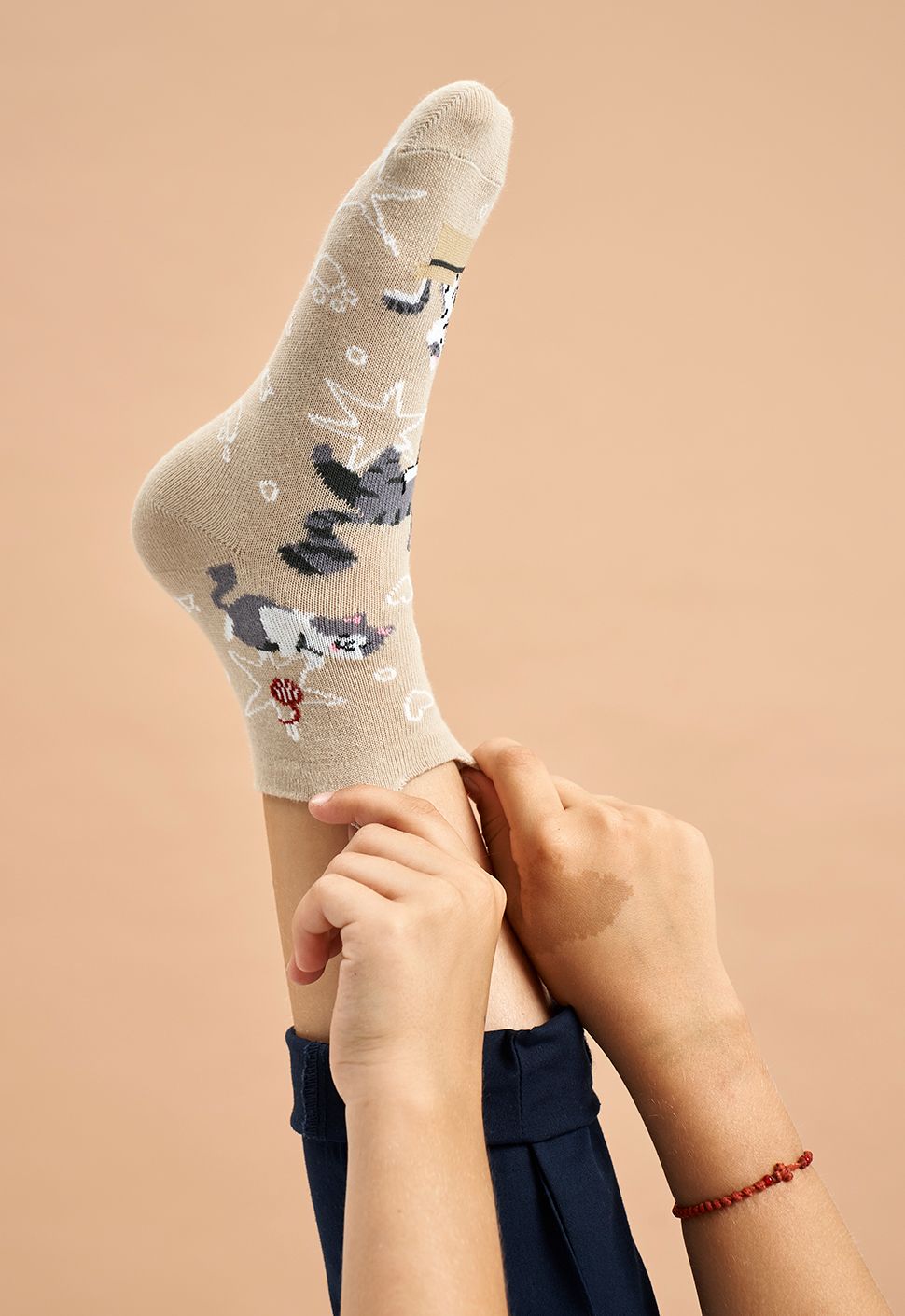 Носки "А ну-ка Давай-ка" в бежевом цвете выполнены из высококачественного хлопка с добавлением полиэстера и эластана.