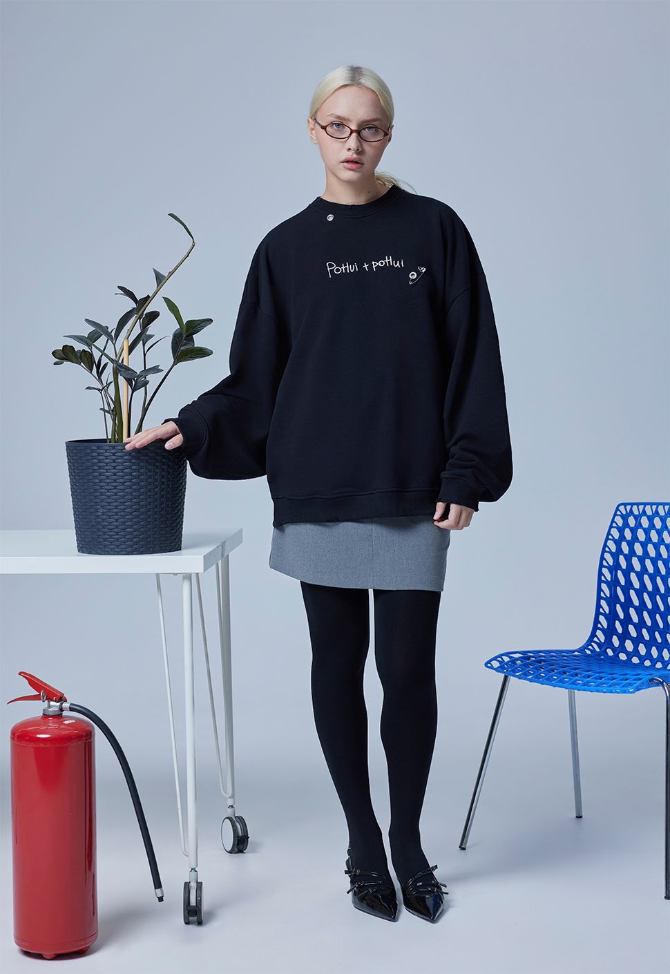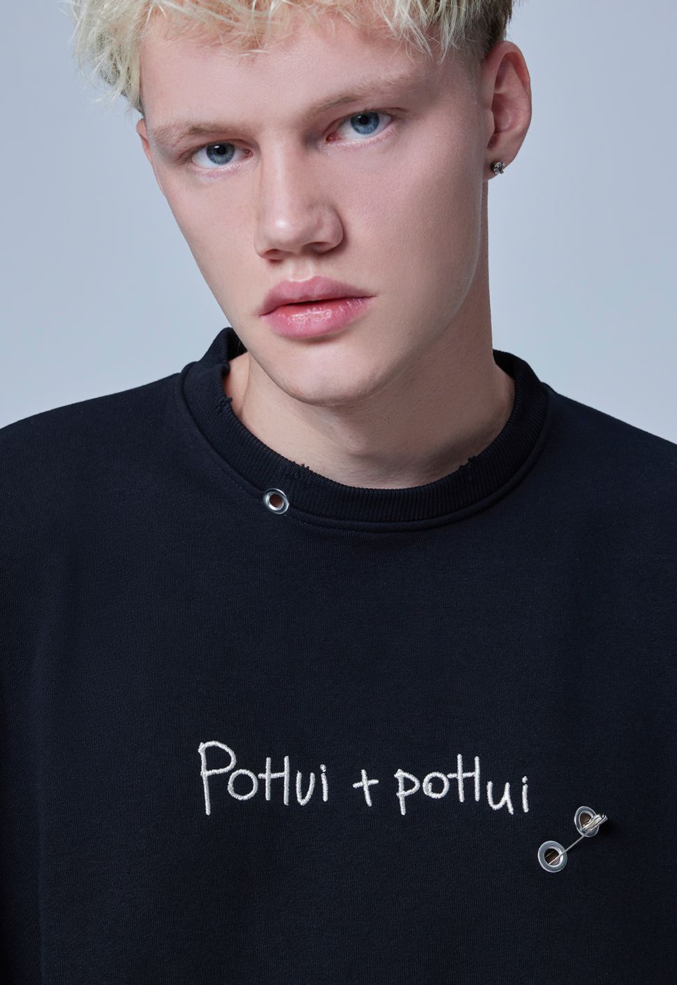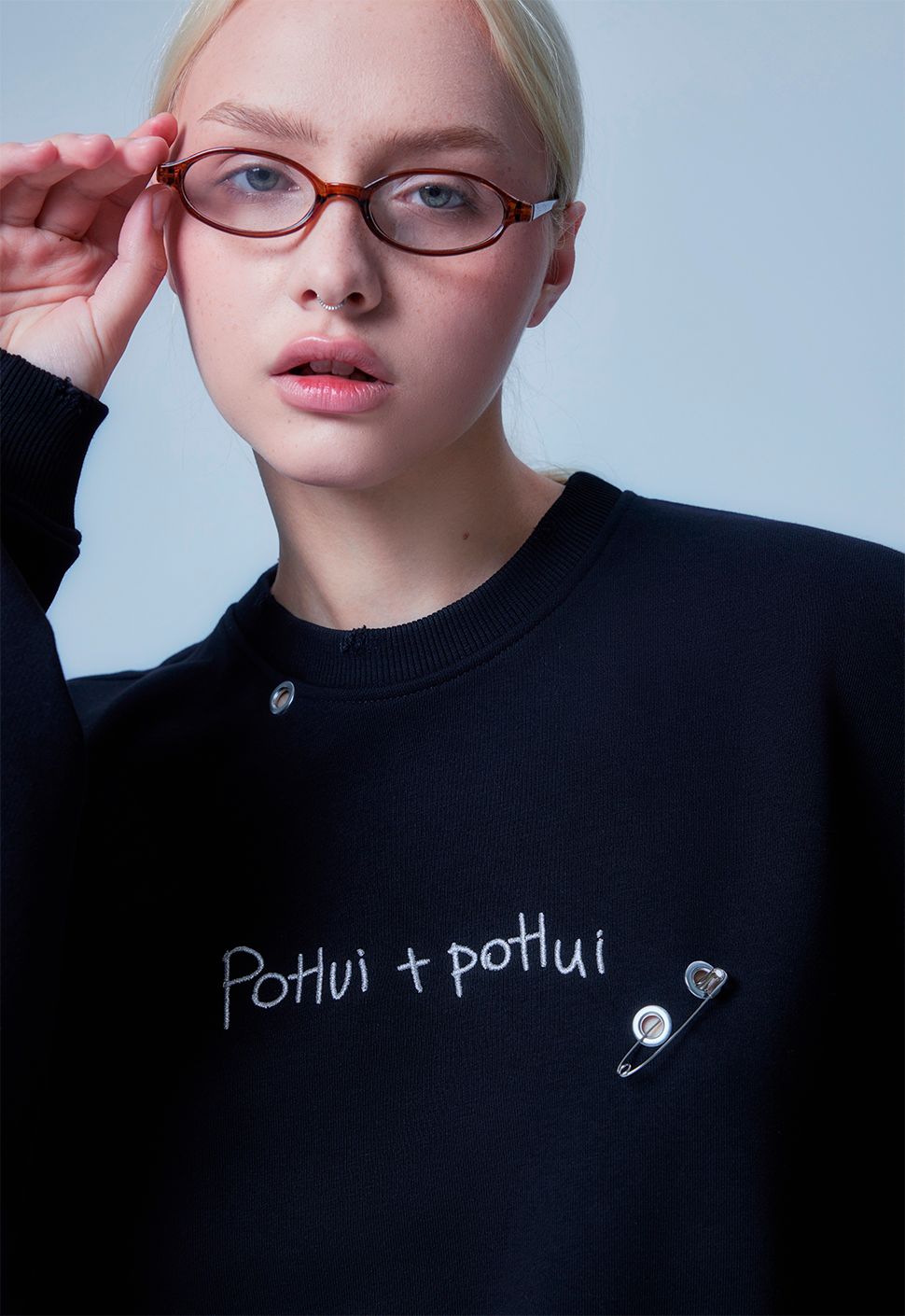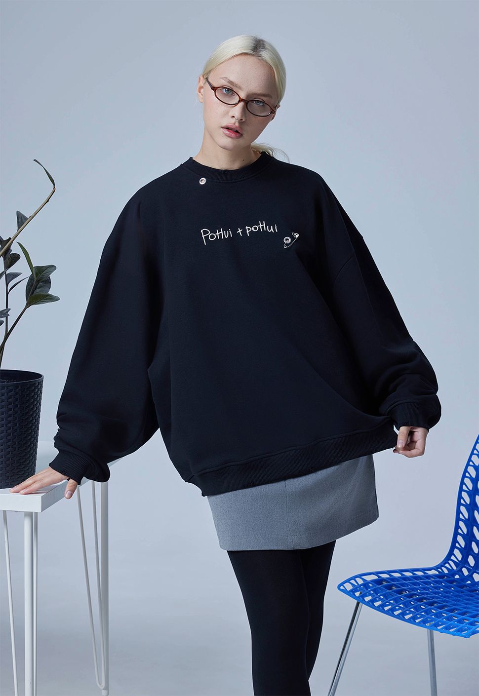 Свитшот от Приятного Ильдара "Po*ui+Po*ui" в черном цвете выполнен из высококачественного хлопка плотностью 320гр/м2. Модель имеет круглый ворот и oversize посадку.