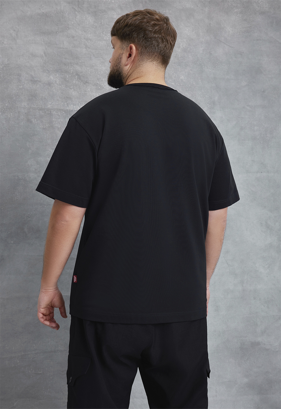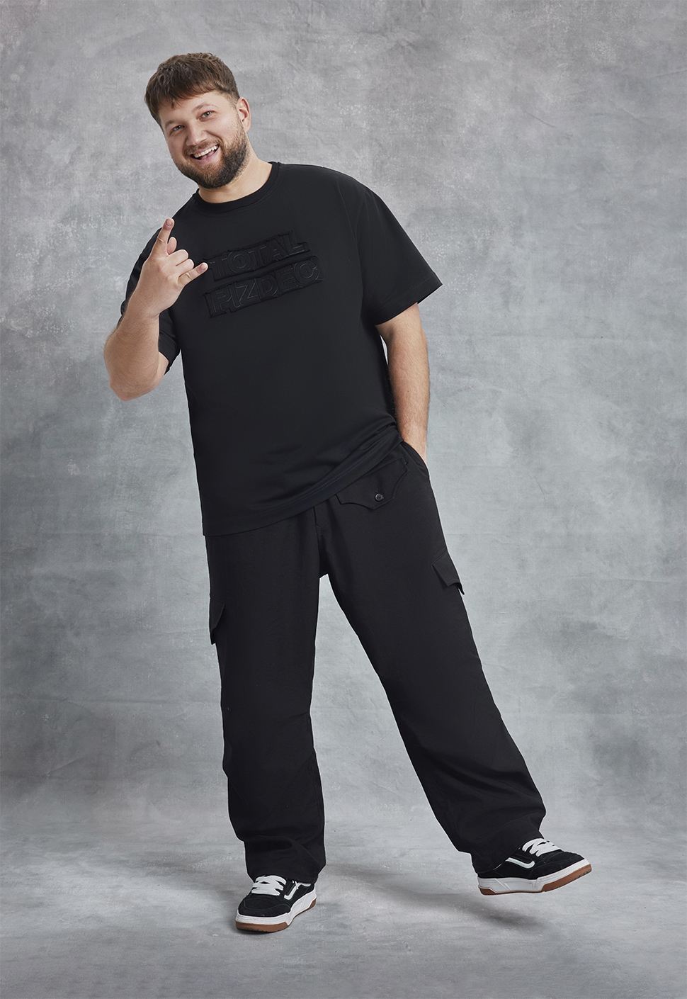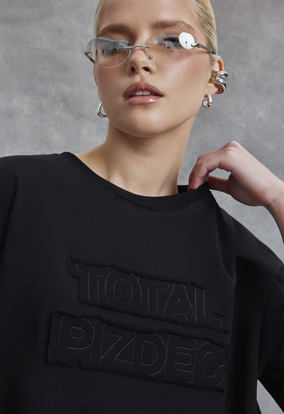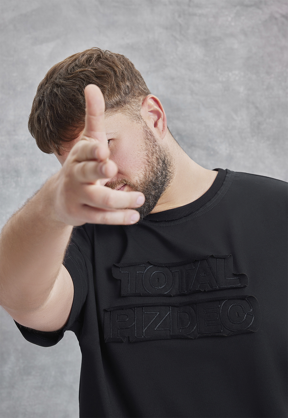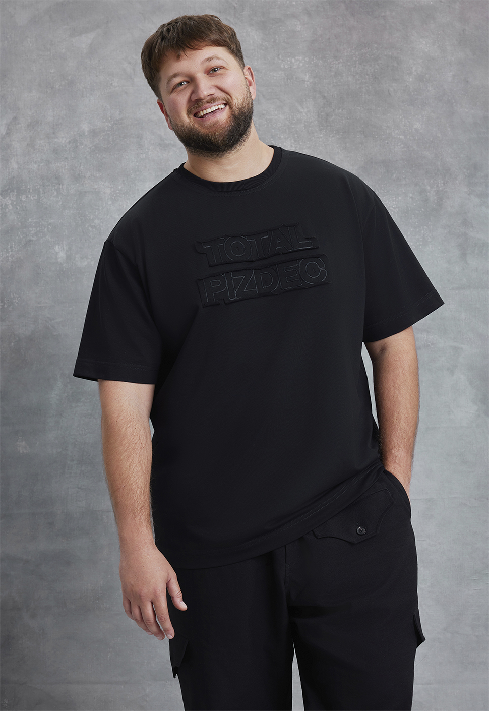 Черная футболка от Приятного Ильдара "Total pi*dec" oversize кроя выполнена из высококачественного плотного хлопка плотностью 240 гр/м2.